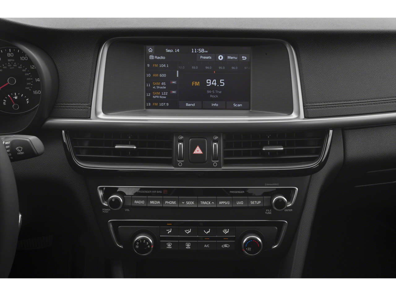 - Radio w/Seek-Scan, Clock, Speed Compensated Volume Control, Steering Wheel Controls, Voice Activation, Radio Data System and UVO External Memory Control