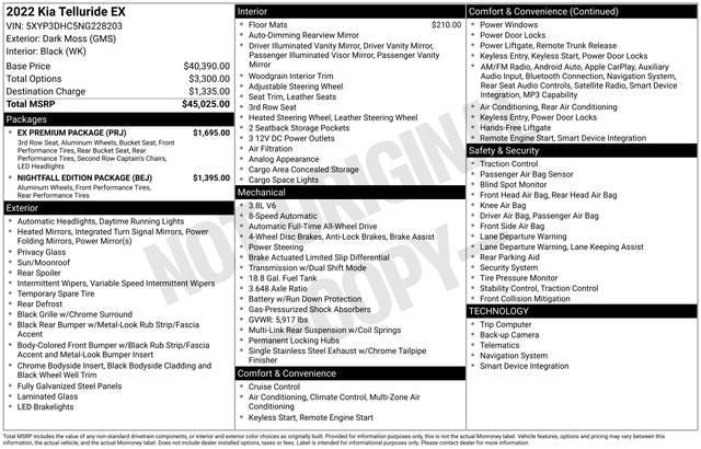 Model: 2022 Kia Telluride EX