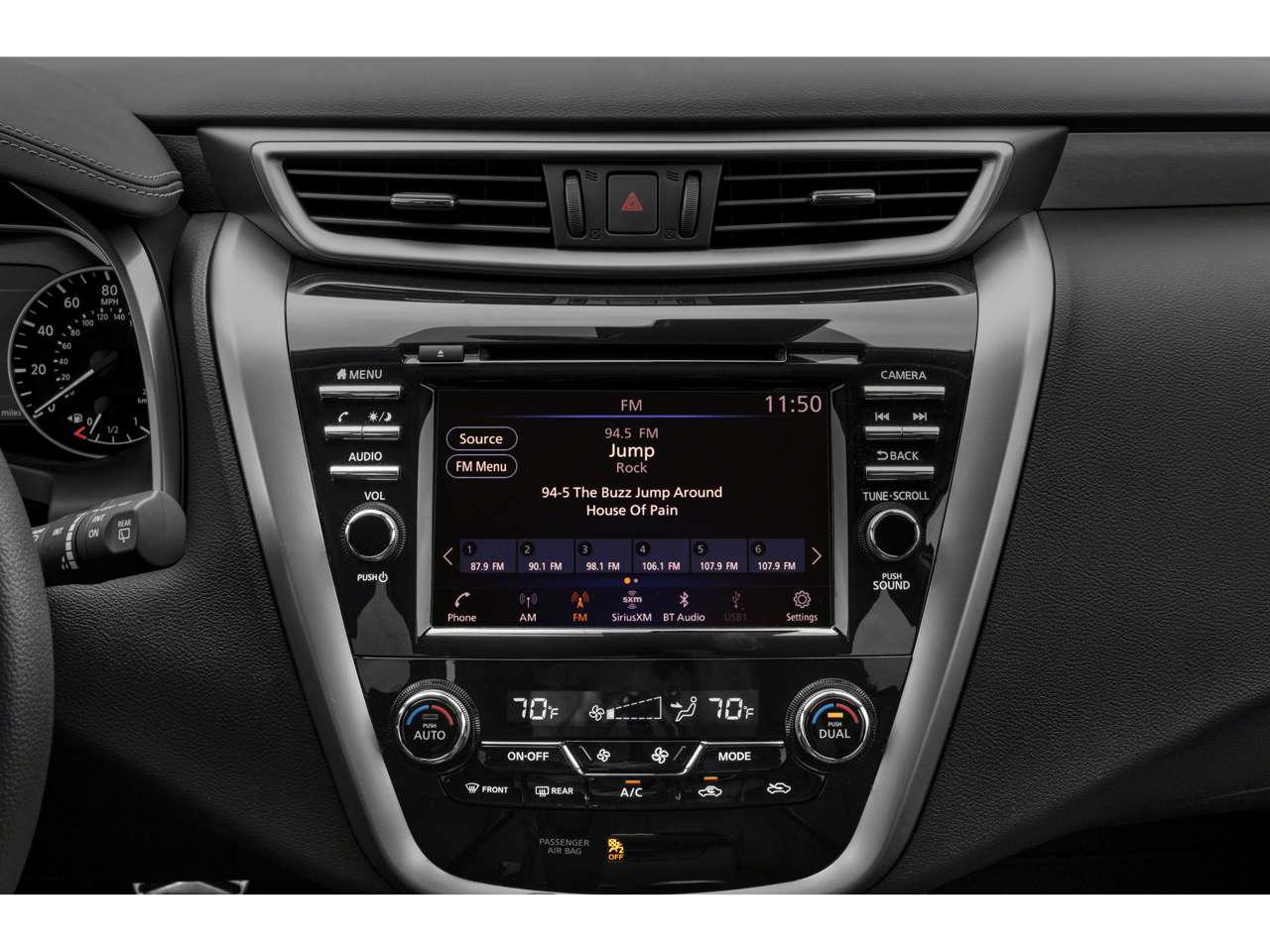 This Murano SV is equipped with a wealth of premium features that cater to your every need. Enjoy the convenience of NissanConnect with Apple CarPlay and Android Auto, allowing you to stay connected on the go. The Dual-Zone Automatic Climate Control and Heated Front Seats ensure your comfort in any weather. Enhance your driving experience with the Blind Spot Warning system and the Rearview Monitor, providing added peace of mind and confidence behind the wheel.
